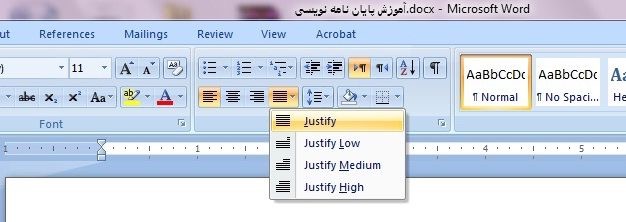 نکته ۱: تنظیمات راست چین و چپ چین و Justify کردن در word