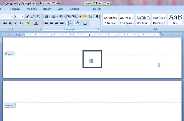 شماره صفحات را در پایین و وسط صفحه مشاهده خواهید کرد.