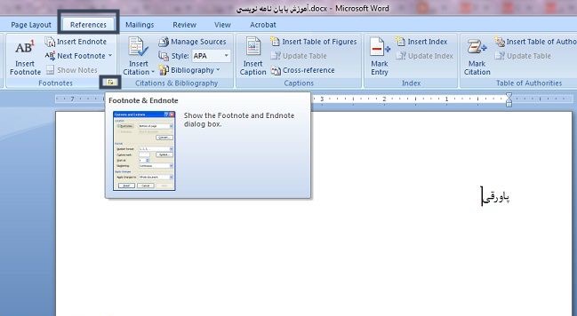 نکته ۹: نوشتن پاورقی (Footnote) در word