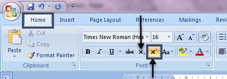 سپس از منوی Home، علامت بالاچین (Superscript) و یا پایین چین (Subscript) را انتخاب نمایید.