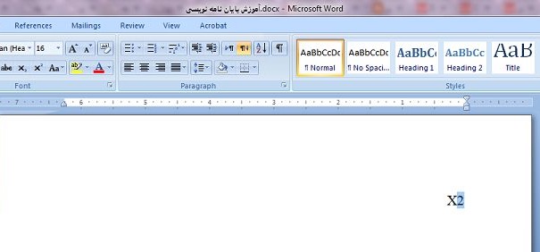 اگر نیازمند نگارش اندیس بالا و یا اندیس پایین هستید، کافی است ابتدا عدد و یا حرفی را که می خواهید بالاچین یا پایین چین شود را با موس انتخاب کرده.