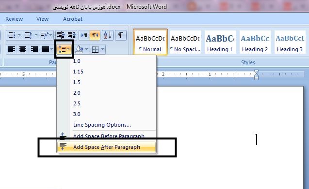 در صورت نیاز به افزودن فاصله، بین پاراگراف ها می توانید از گزینه “Add Space Before Paragraph” برای افزودن فاصله قبل از پاراگراف و یا از گزینه “Add Space After Paragraph” برای افزودن فاصله بعد از پاراگراف استفاده کنید.