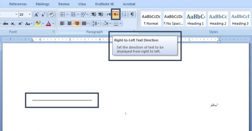 با نگه داشتن همزمان  ۲ کلید  Ctrl+R، یا ۲ کلید Ctrl+L، یا Ctrl+E، می توانید خط جدا کننده پاورقی را به ترتیب به سمت راست، چپ یا وسط منتقل کنید.