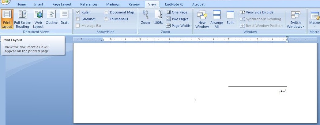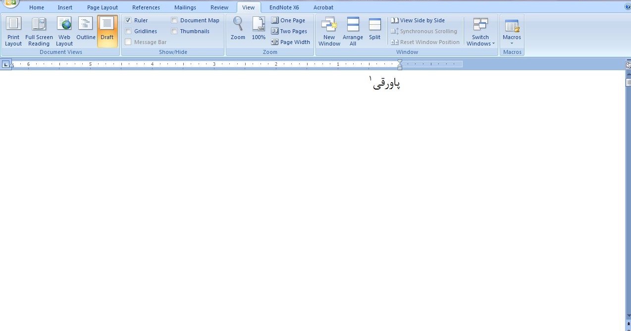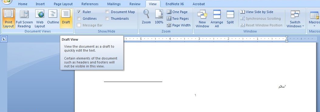برای تغییر جهت خط جدا کننده پاورقی، از منوی View و در قسمت Document Views، حالت نمایش را از Print Layout به Draft تغییر دهید.