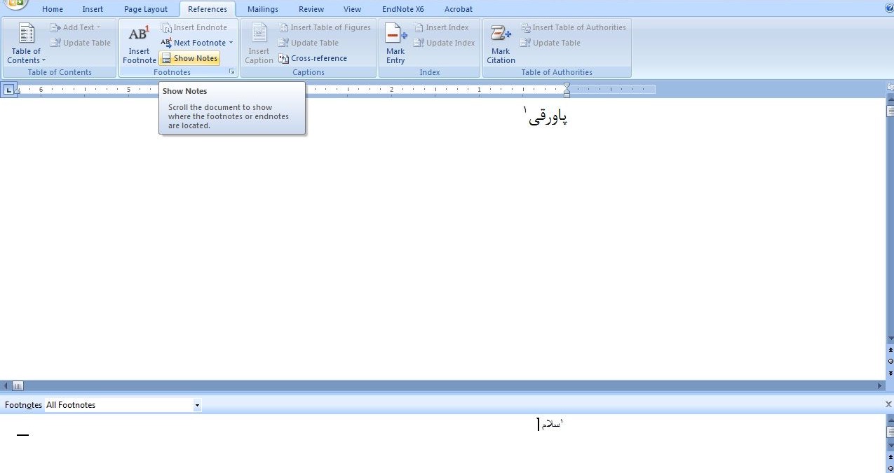 اکنون به منوی References رفته و در قسمت Footnotes، بر روی Show Notes کلیک کنید.