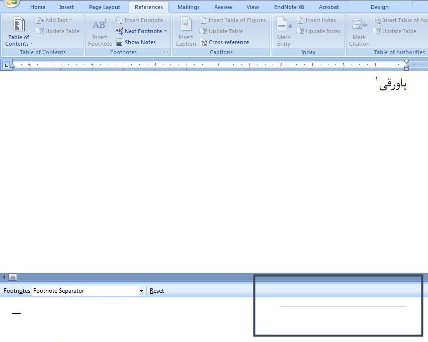 و در نهایت خط جدا کننده پاورقی، مطابق شکل زیر، در سمت راست قرار خواهد گرفت. خواهشمندم با گذاشتن کامنت در انتهای این آموزش، مفید بودن این آموزش را به من اطلاع دهید.
