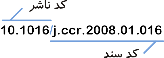 DOI یک استاندارد بین المللی جهت شناسایی اسناد الکترونیکی است که از دو بخش کد ناشر و کد سند تشکیل شده و به وسیله علامت ”/“ از یکدیگر جدا می شوند. نمونه ای از شناسه DOI به صورت زیر است: