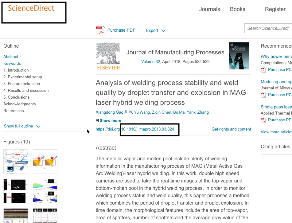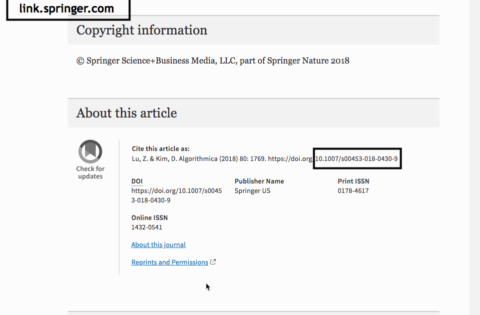 برای نمونه، نحوه پیدا کردن DOI در سایت تعدادی از ناشران معتبر آکادمیک به صورت تصویری در زیر نشان داده شده است.